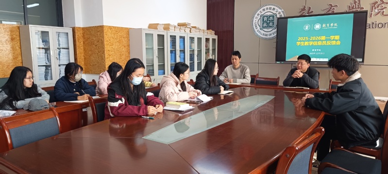 为进一步强化教学管理、全面提升教学质量,切实发挥学生在教学质量监控中的桥梁纽带作用,12月25日,教育学院于学院会议室顺利召开本学期教学信息员总结反馈会议。会议由学院教学秘书俞剑熊主持,教学副院长彭建奎出席会议,学院全体教学信息员参会。