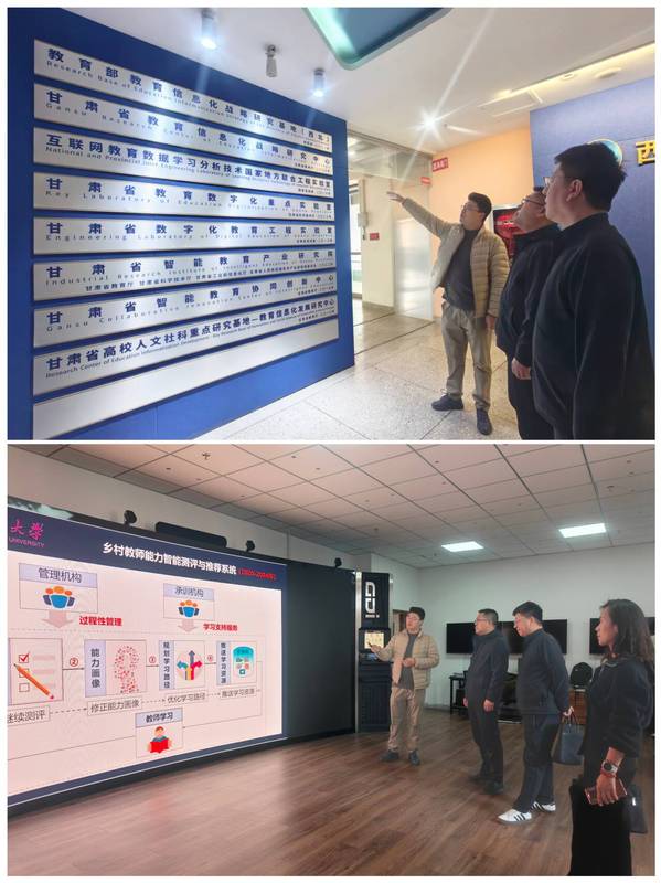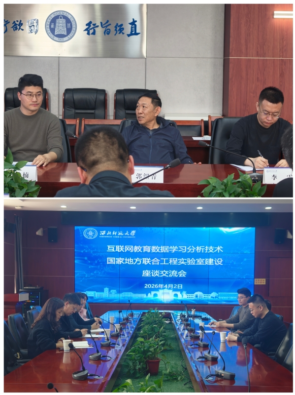 为加快“互联网教育数据学习分析技术国家地方联合工程实验室分中心”的建设,探索管理维护模式,充分发挥分中心的作用,4月2日,教育学院前往西北师范大学智能教育研究院开展调研学习。西北师范大学智能教育研究院院长郭邵青教授、王浩楠主任等热情接待。王浩楠主任带领大家参观了智能教育研究院各实验室,详细介绍了研究院的发展历程和近几年所取得的成绩,分享了好的经验和做法。